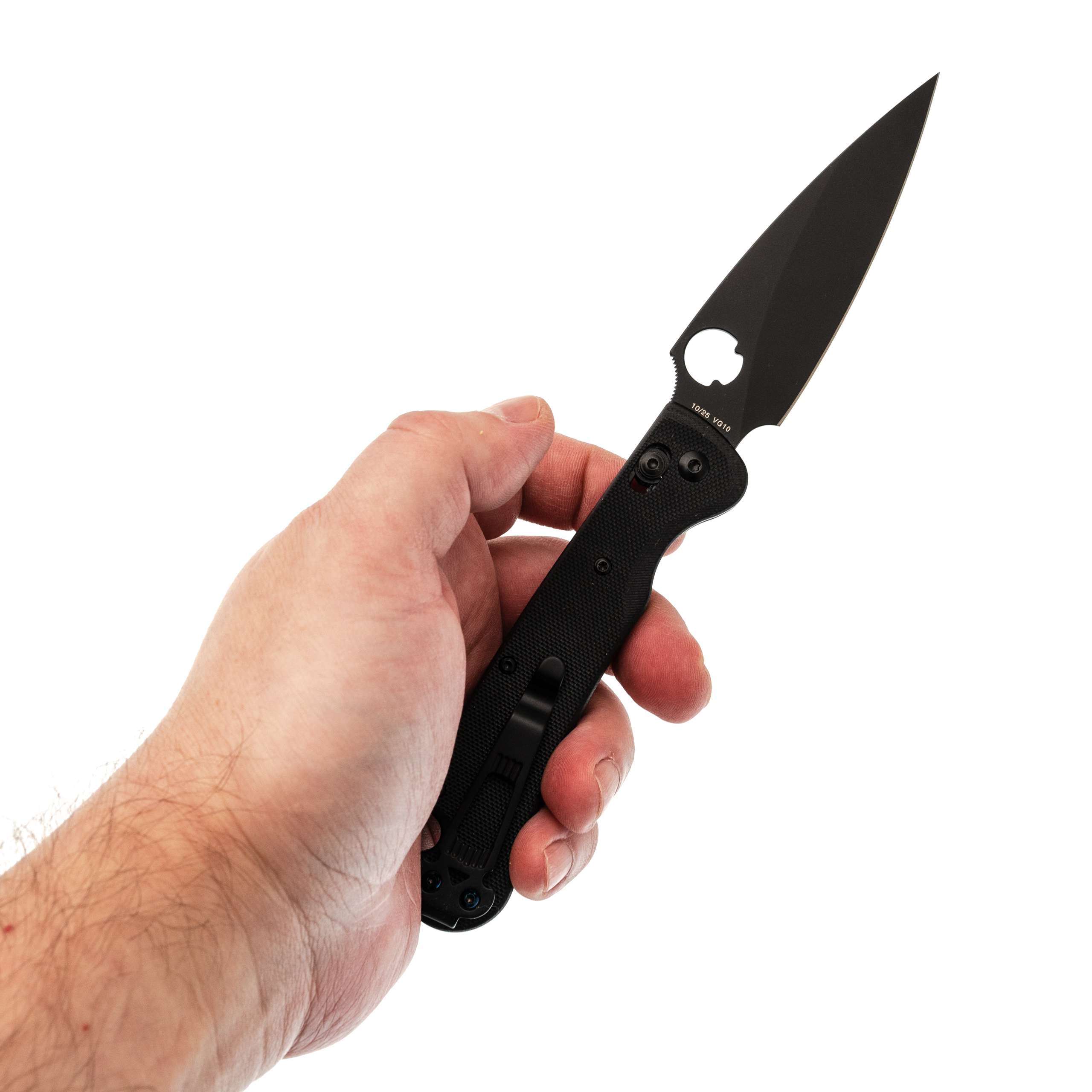 Форма Spear-Point хорошо контролируется и подходит для точной работы. Прямые спуски помогают при строгании, а тонкий обух делает рез лёгким и предсказуемым.