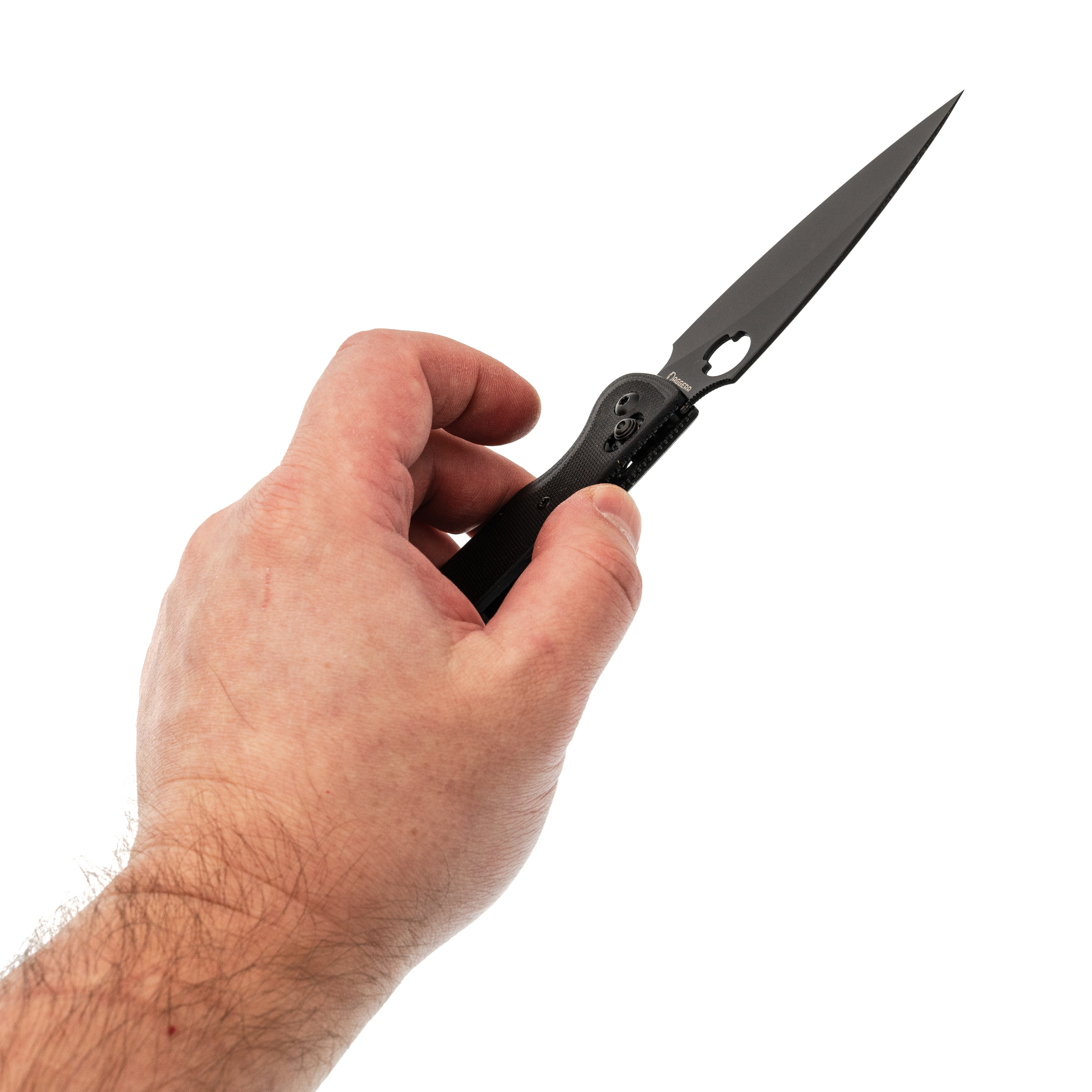 Sting Slim создавался как нож, который удобно носить постоянно и использовать без оглядки. Он плоский, лёгкий и не цепляется за карман. Механика проста и надёжна: клинок открывается через daggerr hole или инерционно, замок X-Lock работает мягко и уверенно. Клинок покрыт PVD, что особенно удобно для активного повседневного использования.
