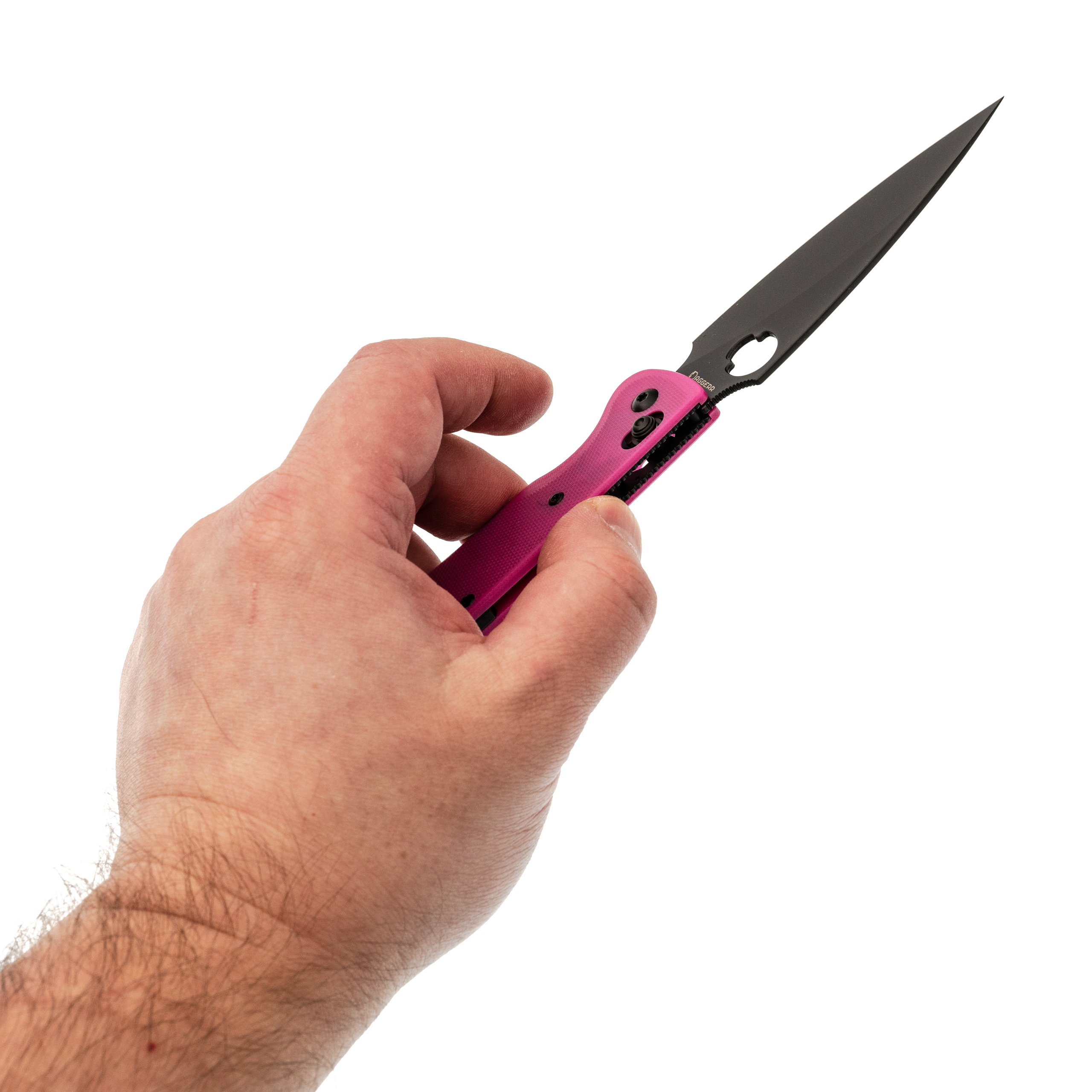 Розовая версия Sting Slim с PVD-покрытием клинка подойдёт тем, кто устал от однотипных решений. При этом нож остаётся полностью рабочим инструментом для ежедневных задач. Открывается быстро, замок X-Lock работает чётко.