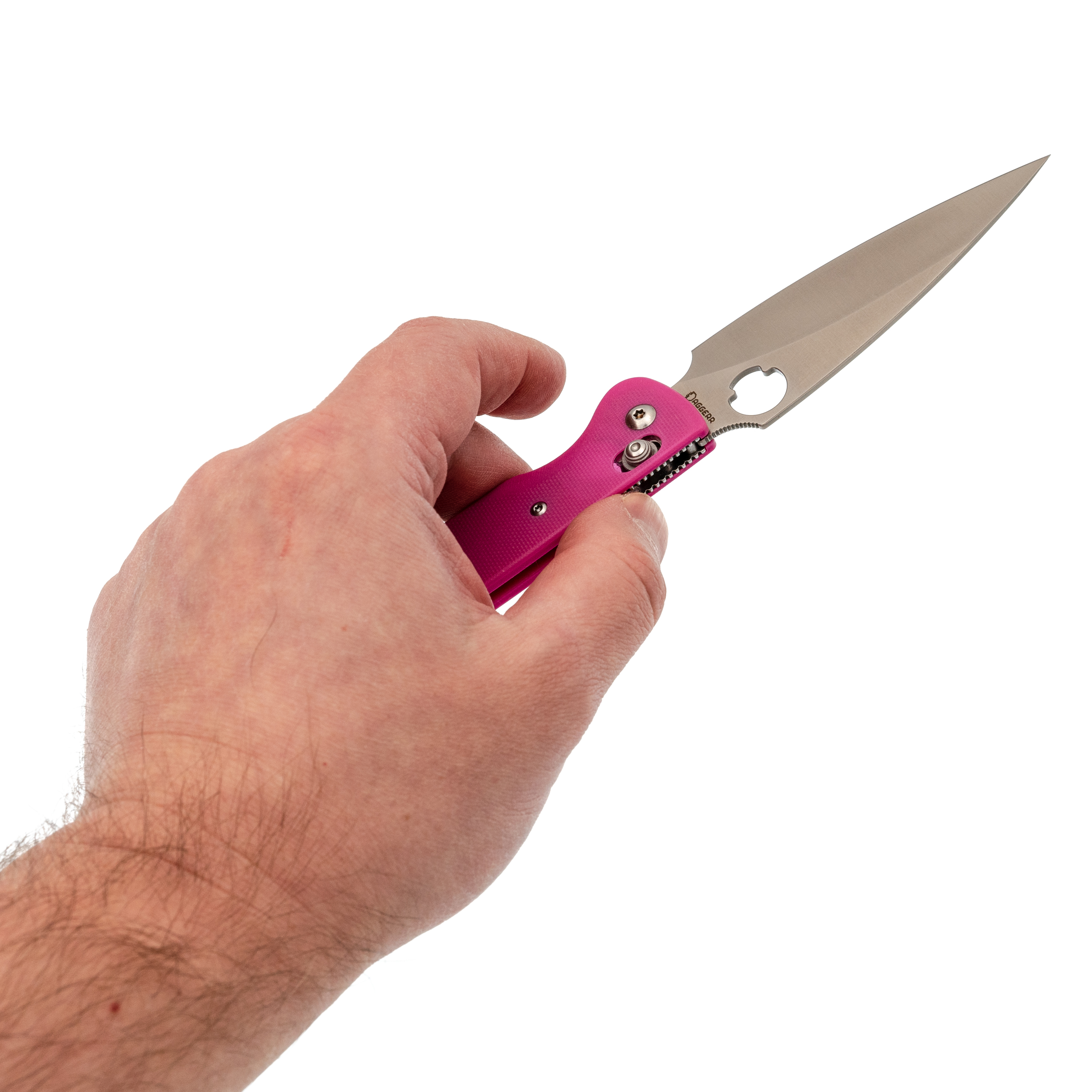 Sting Slim с розовой рукоятью - редкий вариант для тех, кто хочет практичный нож с нестандартным внешним видом. Цвет выделяет модель, но не влияет на рабочие качества. Нож остаётся тонким, лёгким и удобным для ежедневного ношения. Открывание и замок - фирменные для Daggerr.