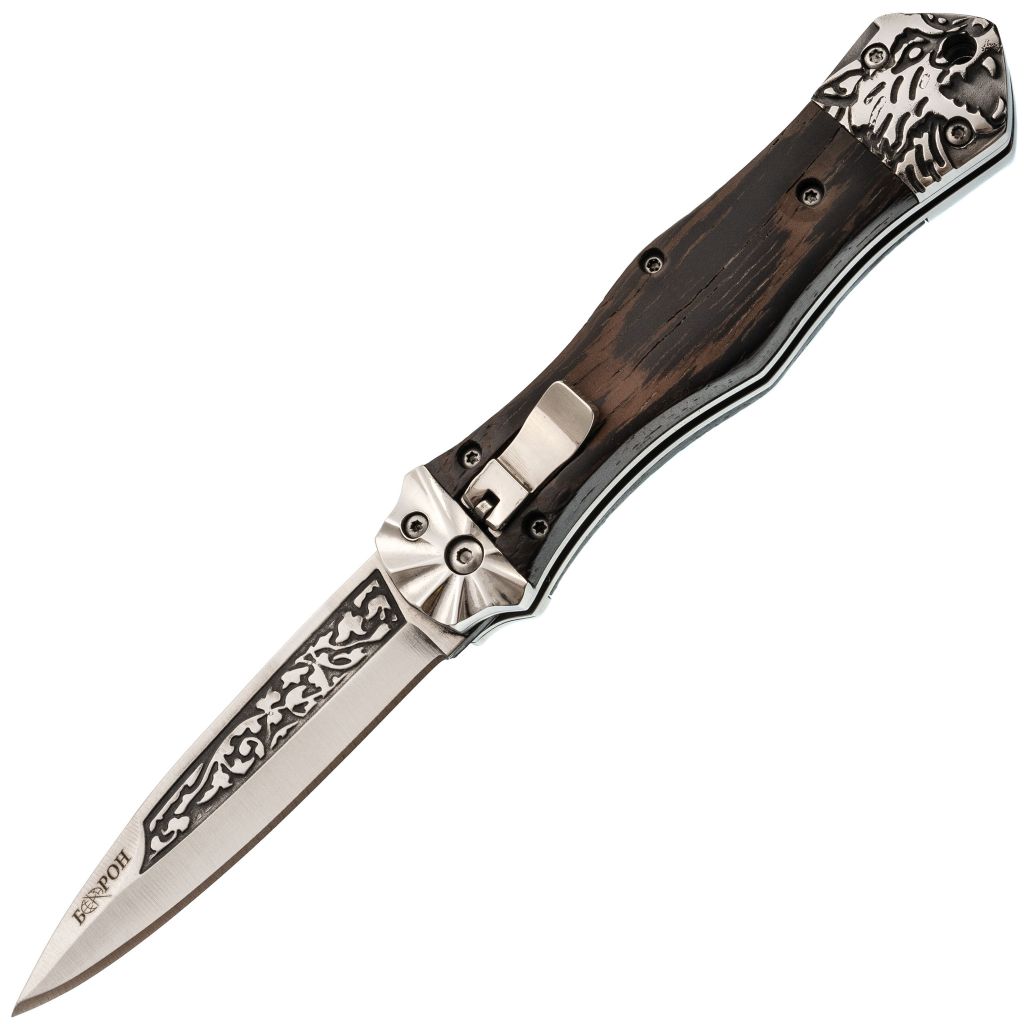 Длина лезвия ножа "Барон" составляет 88 мм, он компактный и удобный для ношения. Инструмент помещается в кармане, он всегда под рукой. Благодаря автоматическому механизму, он быстро и безопасно раскладывается, что важно в экстренных ситуациях. Нож "Барон" станет спутником в любых приключениях.