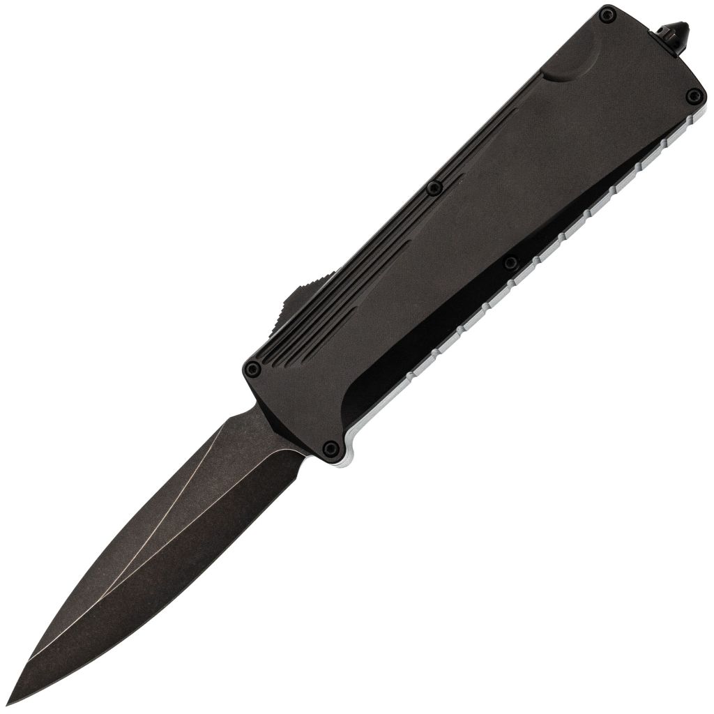 Рукоять изготовлена из прочного и лёгкого алюминия, что делает его идеальным материалом для автоматического ножа. Особое внимание уделено эргономике – удобство держания подчеркивается фирменной клипсой Daggerr в виде черепа, которая надежно крепится вместе с интегрированным стеклобоем для максимальной функциональности.