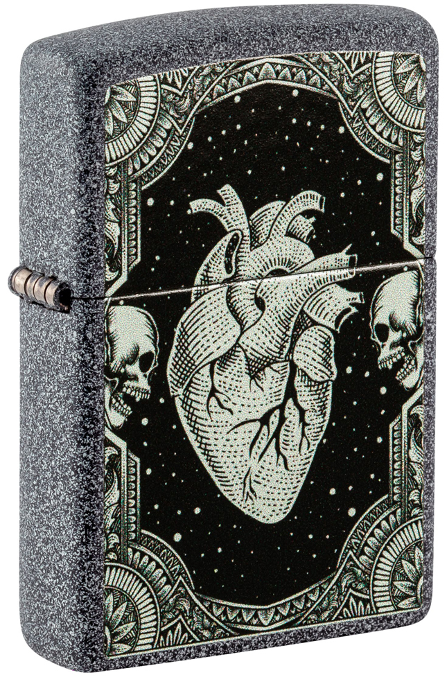 Зажигалка ZIPPO Heart Design с покрытием Iron Stone, латунь/сталь, серая С рисунками Ножиков | V4.Ru: Маркетплейс