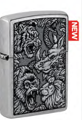 Зажигалка ZIPPO Jungle Design с покрытием Street Chrome, латунь/сталь, серебристая С рисунками Ножиков | V4.Ru: Маркетплейс