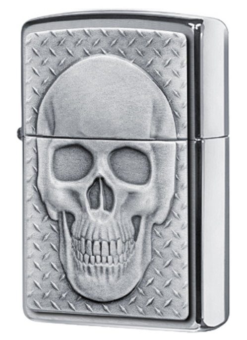 Зажигалка ZIPPO Skull Design с покрытием Brushed Chrome, латунь/сталь, серебристая С рисунками Ножиков | V4.Ru: Маркетплейс