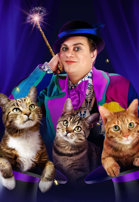 Новогодняя сказка: ВОЛШЕБНЫЕ КОШКИЕдинственный в мире Театр кошек представляет спектакль Владимира Куклачева «Волшебные кошки».Владимир - младший сын Юрия Куклачева. В начале своего творческого пути, получив хореографическое образование, работал танцором. Затем, не захотев расставаться с балетом, но желая продолжить дело своего отца, Владимир проявил творческую смекалку, и на свет появился спектакль «Волшебные кошки», в котором причудливо соединились балетные номера и трюки с кошками. Спектакль был принят зрителями на ура, и Владимир понял, что нашел свой путь. Искусное сочетание балета и кошек в одном спектакле теперь его фирменный стиль.Театр кошек Юрия Куклачева уже более 20 лет является единственным театром кошек в мире. Это прежде всего школа доброты, она помогает детям вырасти добрыми, хорошими людьми, относящимися по-человечески как к кошке, так и к каждому живому существу на нашей планете, даже самому маленькому и слабому.А для взрослых театр Куклачёва - это источник оптимизма и жизненных сил и возможность вновь окунуться в детство. Не упустите редкую возможность окунуться в атмосферу тепла и доброты, зарядиться позитивом от талантливых полосатых артистов.В спектакле принимают участие 50 кошек и