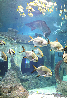 Здесь можно познакомиться с обитателями разных континентов, например, увидеть окинавскую мурену-дракона, зеленую морскую черепаху, пингвинов Гумбольдта.