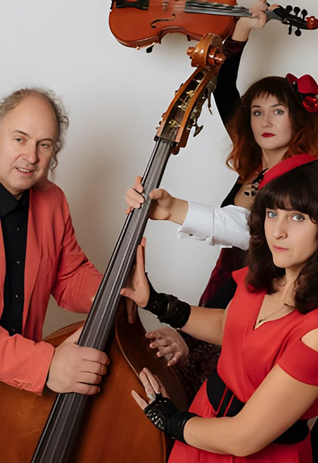«Елисейские поля» – театральный кабаре-бэнд, исполняющий на безупречном французском акустические песни - от Эдит Пиаф до Zaz. Лёгкие композиции в стиле нео-шансон, входящие в репертуар группы, тонко передают дух Парижа – его широких бульваров, уютных кафешек и стильных бутиков.В репертуаре кабаре-бэнда – более пятидесяти песен: любимые куплеты Эдит Пиаф, романтические баллады Франсуазы Арди и Мари Лафорэ, знакомые с детства песни Джо Дассeна и множество более современных хитов из репертуара Патриции Каас, Милен Фармер, группы «Ниагара», Индилы и ZAZ.Состав: пианино, квинтон, контрабас,