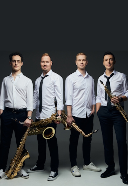 Владимир КОЗНОВ, саксофон-сопраноГеннадий ПОЛУЯКТОВ, саксофон-альтСтанислав ПЯЛОВ, саксофон-тенорИлья БОГОМОЛ, саксофон-баритонЧетверо молодых и невероятно харизматичных виртуозов продемонстрируют красочную тембровую палитру целого семейства саксофонов и свои поистине безграничные исполнительские возможности.