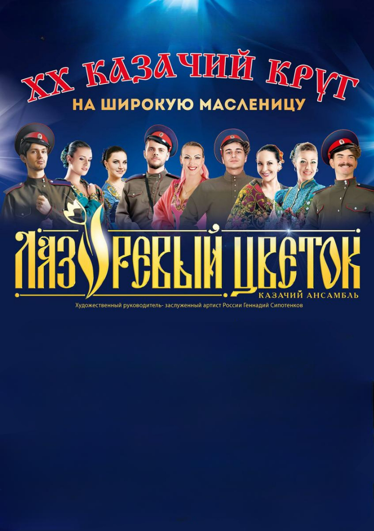 Вот уже двадцать лет ансамбль казачьей песни «Лазоревый цветок», как настоящий хранитель традиций донского казачьего песенного искусства, собирает лучших представителей жанра на «Казачий круг на широкую Масленицу», чтобы вместе со зрителями погрузиться в самобытный мир казачьей песни и неповторимую атмосферу народного быта и гулянья.