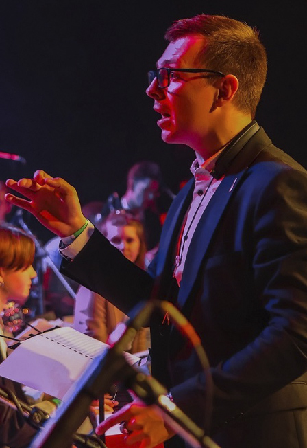 Руководитель оркестра — Денис Мельников — саксофонист, аранжировщик и педагог, ученик знаменитого Дмитрия Мосьпана.