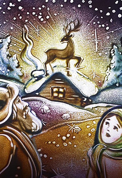 В высоких сугробах, посреди леса, стоит заснеженная избушка. В ней возле жарко натопленной печи сидит сиротка Дарёнка и слушает чудесные истории старика Коковани о волшебном козлике, у которого из-под копытца, как искры, сыплются драгоценные камни. Из трубы в морозное небо вьётся дым, а кошка Мурёнка уже слышит топот серебряного копытца…Историю о серебряном олене, хранителе несметных богатств, Павел Петрович Бажов услышал в Киселёвском округе от рудничных кузнецов. И эта история вдохновила писателя на создание сказки «Серебряное копытце», которая была издана в 1938 году.Сказка с песочной анимацией помогает детям лучше воспринимать классическую музыку, развивает творческое мышление и обогащает внутренний мир ребенка. Картины из цветного песка рождаются прямо на глазах на большом экране, иллюстрируя слова сказочника. Захватывающее магическое зрелище, от которого невозможно оторваться!Пётр Степанов (английский рожок)Елена Эндеберя (фортепиано)Лидия Миллер (песочная анимация)Сергей Степанов (добрый