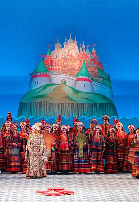 Возврат билетов в Мариинский театр, Концертный зал Мариинского театра и Мариинский театр Новая сцена не осуществляется. Осуществление возврата билетов невозможно по техническим причинам.Каждому зрителю необходимо приобретать билет! Посещение спектаклей и концертов детям до 5 лет нежелательно.Внимание! Билеты продаются для российских граждан. Для иностранных граждан действуют иные тарифы. Специальный тариф – тариф для всех граждан РФ, а также иностранных граждан, постоянно проживающих, работающих или обучающихся в России. Билеты для иностранных граждан можно приобрести только в кассах «КАССИР РУ».Внимание! На спектакли, проходящие на сценах Мариинского театра, Концертного зала Мариинского театра и Мариинского театра Новой сцены не распространяется действие акций и спец. предложений.Сказка о царе Салтанеопера Николая Римского-КорсаковаИсполняется на русском языке (сопровождается синхронными титрами на русском и английском языках)Авторы и постановщикиМузыка Николая Римского-КорсаковаЛибретто Владимира Бельского по одноименной сказке Александра ПушкинаМузыкальный руководитель – Валерий ГергиевРежиссер-постановщик – Александр ПетровСценография – Владимир Фирер(по мотивам эскизов Ивана Билибина)Художник по костюмам – Владимир ФирерХудожник по свету – Владимир ЛукасевичОтветственный концертмейстер – Лариса ГергиеваГлавный хормейстер – Константин РыловБалетмейстер – Ирина НовикКраткое содержаниеПрологЗимним вечером в светлице деревенской избы три сестры сидят за пряжей. Старшая и средняя хвастают своей красотой, а младшая молчит. За кротость и скромность сёстры считают ее дурочкой и заставляют работать на них.Размечтались они, чем каждая прославилась бы, если бы царь взял ее замуж.Старшая хвалится задать невиданный пир, средняя – в одиночку наткать на весь мир полотна, а младшая говорит, что родила бы для батюшки-царя богатыря-сына. Все это слышал притаившийся под окошком царь Салтан.Он входит в светлицу и объявляет решение: жить всем трем во дворце, старшей быть поварихой, средней – ткачихой, а младшей – царевой женой. Царь ушел с младшей сестрой, а две другие вместе с бабой Бабарихой стали советоваться, как расстроить счастье удачливой дурочки. И задумали они обмануть Салтана.Действие первоеЦарь уехал на войну, а тем временем родился у молодой царицы Милитрисы сын.Мирно течет жизнь во дворце. Одна лишь царица не знает покоя: тревожит ее, что долго нет гонца с ответным письмом от Салтана. Напрасно Скоморох пытается развлечь ее своими прибаутками; не веселят ее ни сказки Старого деда, ни притворная доброта сестер, приносящих ей подарки. Но вот появляется развязный и болтливый Гонец. Ловкие заговорщицы, подпоив его, успели подменить Салтанову грамоту. Народ мнется в нерешительности, но отступает перед угрозами торжествующих сестер и Бабарихи – бочку с Милитрисой и царевичем пускают в море.Действие второеПустынный берег острова Буяна. Сюда, вняв мольбам царицы, волна вынесла бочку. Милитриса жалобно сетует на судьбу, а заметно подросший царевич весело резвится, радуясь светлому миру. Сделав лук, он отправляется на поиски дичи, но внезапно замечает громадного коршуна, который преследует лебедя. Метко пущенной стрелой юноша убивает его. К изумлению царицы и царевича, Лебедь-птица вышла из моря и заго