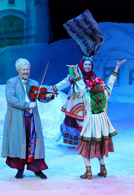 Театральный фестиваль «Школьная классика» рекомендует спектакль к просмотру школьникам.Постановка: Камерный музыкальный театр Эль АртРежиссер: Элеонора ШумиловаВеселый и яркий спектакль по одноименной повести Н.В. Гоголя весь пронизан украинской и русской народной музыкой, колядками и святочными песнями. Спектакль перенесёт зрителей в маленький украинский хутор ХIХ века, где в ночь перед Рождеством происходят удивительные чудеса: чёрт крадёт месяц и всячески пытается испортить людям праздник; кузнец Вакула ради любви своенравной красавицы Оксаны седлает Черта и летит к самой Царице за черевичками; любвеобильная и предприимчивая вдова Солоха едва успевает упаковывать в мешки претендентов на её сердце...Но с Рождеством Христовым нечисть исчезает, а жизнь людей становится светлой и радостной. Спектакль будет интересен не только детям, но и их родителям, в нём есть «и услаждение, и назидательность» (Н.В.Гоголь).Продолжительность: 1 час 40 минут с