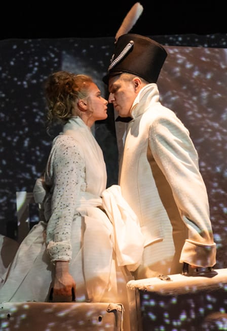 Александр ПушкинФантазии и сны в одном действииРежиссер-постановщик — Гульнара ГалавинскаяХудожник-постановщик — Андрей ЩаевПластика — Алексей ПортнягинХудожник по свету — Константин РожковПесочная анимация — Сергей Назаров«Метель» — последнее произведение из цикла «Повести покойного Ивана Петровича Белкина» Александра Пушкина. Развивая мотив судьбы и предопределения в жизни человека, писатель показывает, как причудливо может сложиться жизнь, если в нее вмешается необъяснимый рок.На протяжении всего спектакля мы не просто следуем за пушкинским сюжетом, но вместе с героями пытаемся ответить на, пожалуй, главный человеческий вопрос: если каждый из нас сам кузнец своего счастья, почему не всегда оно приходит таким, каким оно видится каждому из нас? Мистичная природа повести создает уникальную, неповторимую атмосферу сценического вихря, в который погружается зритель.Один из самых зрелищных спектаклей театра сопровождается песочной анимацией, декорациями-трансформерами, изысканной световой партитурой и живой музыкой в исполнении камерного оркестра театра.Действующие лица и исполнители:Рассказчик – Александр ПоваляевМарья Гавриловна – Мария МоничВладимир – Артем Леонов / Олег ТарасовБурмин – Артур МартиросовСлужанка Настя – Лариса Капустина / Любовь ВасинаФортепиано – Вадим ГанкинМуза-скрипка – Наталья ШаповаловаМуза – флейта – Анастасия АбрамоваПродолжительность: 1 час 20