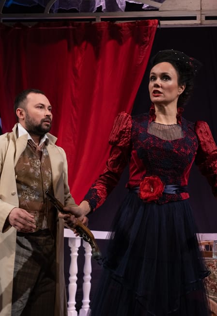 Антон ЧеховКомедия в двух действияхРежиссер-постановщик — заслуженный деятель искусств РФ Артем БибилюровХудожник-постановщик — Михаил КарягинХудожник по костюмам — почетный работник культуры города Москвы Любовь ЛаптеваЧто может произойти когда человек совершенно не думает о чем говорит, а бытовые принципы берут верх над искренними чувствами? И почему «инстинкт» может полностью подчинить себе здравый смысл, казалось бы, взрослых и самостоятельных людей? Именно об этом — спектакль «Шутки в сторону», в основу которого легли знаменитые чеховские водевили «Предложение» и «Медведь».Согласитесь, верх нелепости — придя на сватовство, вдруг закатить скандал из-за клочка земли. Или разыграть комедию перед должниками, а после влюбиться в одну прекрасную заимщицу и простить ей всё. Но почему же подобные сюжеты, непременно вызывая в нас почти истерический смех, продолжают оставаться узнаваемыми и актуальными для любого времени? Не потому ли, что именно из таких «историй» и складывается наша жизнь? И всё, что было написано десятки лет назад, до слёз веселит нас сейчас.Действующие лица и исполнители:Иван Васильевич Ломов, Портрет – Павел РемневНаталья Степановна Чубукова, Елена Ивановна Попова – Юлия МалининаГригорий Степанович Смирнов – Владимир ВитанСтепан Степанович Чубуков–заслуженный артист России Николай МальцевПродолжительность: 1 час 50 минут с 1