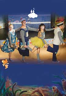 "Золотая рыбка"Интерактивная сказка для семейного просмотраИмпровизация по мотивам сказки А.С. Пушкина "Сказка о рыбаке и рыбке".Наша постановка - это не просто история о старухе и владычице морской. Это настоящее морское приключение! Поплывут на импровизированном корабле не матросы, а клоуны. Их номера ставил художественный руководитель театра клоунады "Лицедеи" Леонид Лейкин. Оригинальные костюмы, танцевальные номера, "морские декорации" и веселые игры ждут вас!Режиссер-постановщик - Наталья Колесник.Сценография, исполнение декораций - Любовь ПоляковаХореограф - Валерия МичковаЗвукорежиссер и муз.оформление - Ирина МичковаПостановка клоунских номеров, педагог-консультант - художественный руководитель театра "Лицедеи" Леонид ЛЕЙКИНВ ролях:Валерия Мичкова/Ирина ЛарионоваВалентина Ладыгина/Алёна ПряничниковаМихаил Кузьменков/Сергей БудьСергей Будь/Павел ЛебедевБилет необходимо приобретать для каждого зрителя, старше 2-х летРассадка в зале свободная, детки садятся вперёд, родители за ними.Детям желательно взять сменную обувьПродолжительность: 50