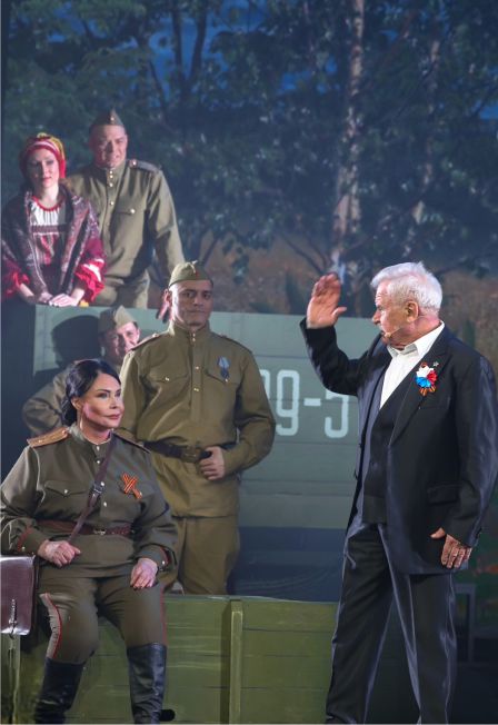 Он сказал: «Зачем мне орден? Я согласен на медаль!»Когда у народного артиста России Сергея Петровича Никоненко спросили, кто его любимый литературный герой, он, не задумываясь, ответил: «Василий Тёркин!». Сильный, бесстрашный, находчивый и никогда не унывающий солдат, шедший в бой «не ради славы, ради жизни на земле». На таких людях держится страна. Им и посвятил свою поэму Александр Твардовский. А мы – посвящаем музыкально-драматический спектакль, в котором народного героя, солдата Теркина, представит народный артист Никоненко.Премьера состоится в День Победы. Но, как справедливо заметила режиссер-постановщик Любовь Гречишникова, эта история не только о воинах прошлого, она – о дне сегодняшнем, об умении любить и защищать свою любовь к Родине, о преемственности поколений, о сохранении исторической памяти. Зрители совершат невероятное путешествие во времени: перенесутся на 80 лет назад и окажутся на передовой в самый разгар Великой Отечественной, станут свидетелями ожесточенных боёв, остановятся на ночной привал и, в конце концов, вернутся в день сегодняшний, чтобы принять участие в марше Бессмертного полка и вспомнить своих предков-героев, которые есть в каждой семье.Сергей Никоненко выступил в этом спектакле как автор сценария – совместно с Любовью Гречишниковой. Также в спектакле принимают участие народная артистка РФ Надежда Бабкина, заслуженный артист РФ Вячеслав Манучаров, артисты театр и кино – Иван Замотаев, Юрий Катаев, Анна Кузьмищева, ансамбль «Русская песня», балет «Живая планета», фолк-рок группа «После 11», артисты балета ансамбля танца «Русские сезоны», участники детско-юношеской студии «Наследие».Продолжительность:1 час 50 минут, без