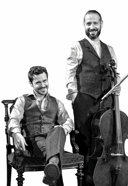 Борис и Павел ловко соединяют блистательное актерское ремесло с виртуозным исполнением музыкальных фрагментов от Баха до Чижика-Пыжика, они и играют, и танцуют, и поют, и читают.