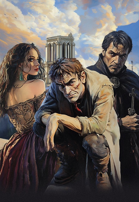 На его фоне развертываются стремительные события, связывающие судьбы многих персонажей, главными из которых стала – цыганка Эсмеральда, глухой горбун Квазимодо, священник Фроло, поэт и творец Гренгуар и капитан Феб.