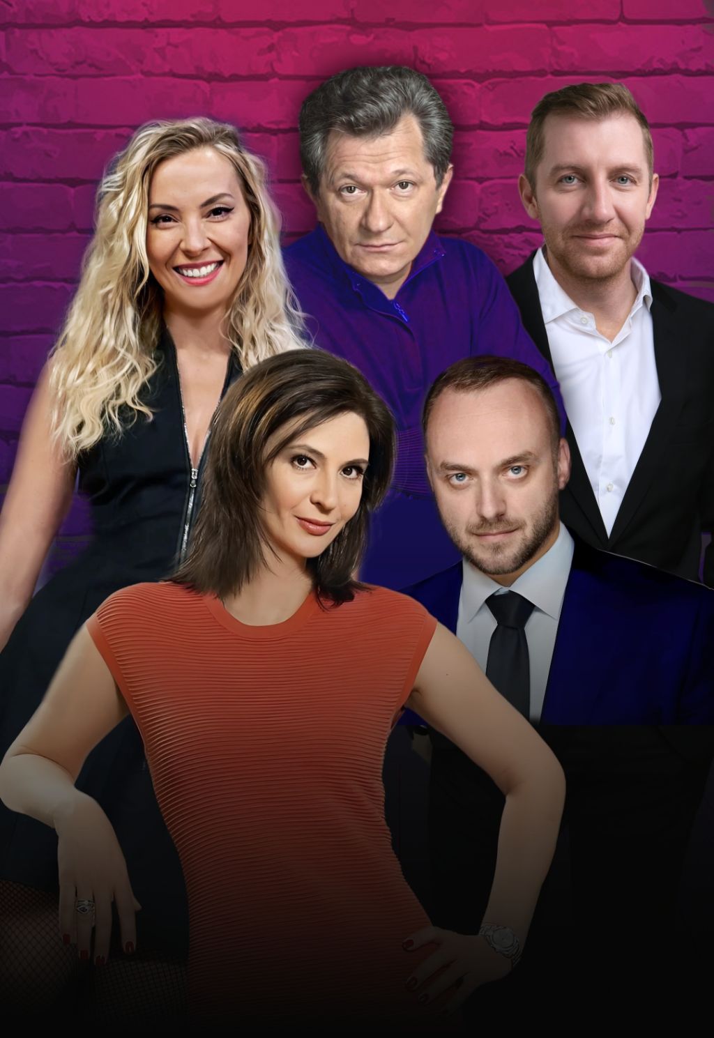В спектакле "Обними меня" на сцене встречаются звезды популярных проектов, представляя зрителям сочетание юмора и эмоциональной глубины.