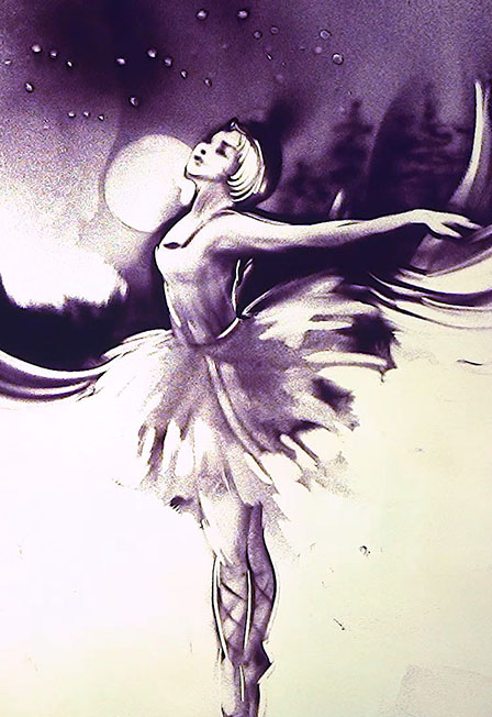 🏖 Песок, который танцуетНа большом экране — кинематографичная песочная анимация, в которой:белые лебеди рождаются из тумана над озером,замок Ротбарта встаёт из теней,бал в королевском дворце сверкает цветным песком.