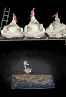 Х. -К. АндерсенПо словам режиссёра Светланы Озерской, "Сказка «Гадкий утенок» – автобиография духа автора". Неказистый птенец – длинный, тощий и неуклюжий – родился на птичьем дворе. Сначала его миром было яйцо. Потом гнездо, где стало заметно, как сильно он отличался от своих братьев. Затем поляна под лопухами, а дальше – птичий двор, где утёнок стал подопечным всех живущих там взрослых – кур, уток, гусей. И однажды птенец решил сбежать со двора и выйти в большой мир. . . А потом и взлететь! Сказки Андерсена необычайно театральны, ведь первые свои сказки он сочинял по подаренным ему знакомым расклейщиком театральным афишам, не видя самих спектаклей и придумывая альтернативные истории. Продолжительность: 45 минутРежиссёр-постановщик, инсценировка: Светлана ОзерскаяХудожник-постановщик: Андрей ЗапорожскийКомпозитор: Вячеслав ГайворонскийХореограф: Светлана ВакуленкоВ ролях:Любовь Бирюкова засл. арт. РоссииТатьяна Мацкевич засл. арт. КарелииИрина БудниковаНаталья ВасильеваРодион