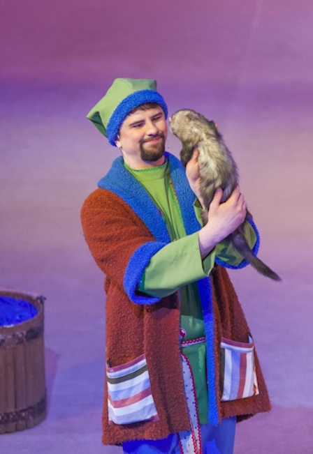 В спектакле участвуют: лисички, хорьки, ворон, кошки, коза, енот, попугаи, обезьянка, дикобраз, пеликан, африканский ворон, скунс, генетты и ушастая пустынная лисичка —