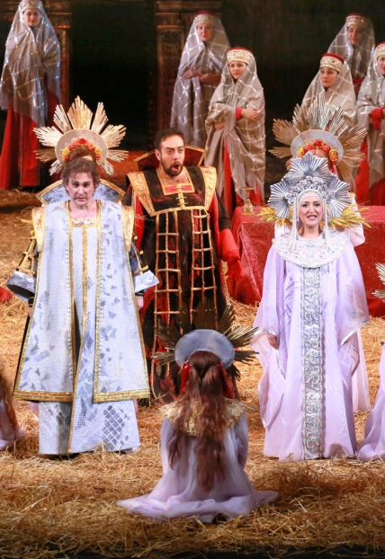 Неожиданно в сопровождении бояр появляется Малюта Скуратов и объявляет волю Ивана Грозного: Марфа выбрана сочетаться браком с государем и стать царицей.