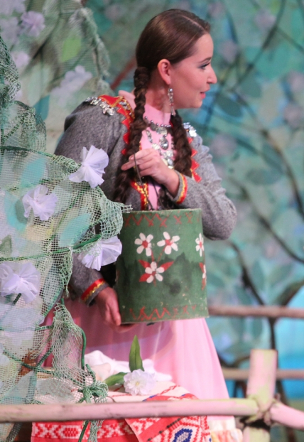 Появляется мулла Мухаметша, следом — Ильяс с друзьями ведут невесту, спрятанную под богатым покрывалом.