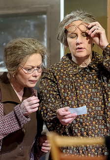 Шифоньер, швейная машинка Зингер, обеденный стол, кровати с железной спинкой, салфетки ришелье – в спектакле живет и дышит послевоенный советский быт, который сохранялся десятилетиями, хоть менялись радиолы и добавлялись холодильники.