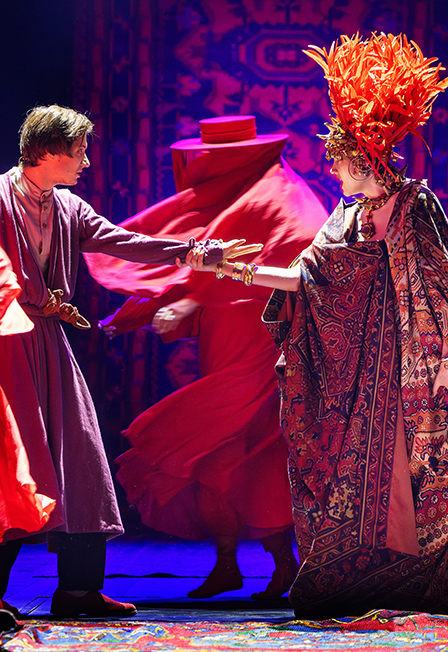 Постановка: Егор ПерегудовСценограф-постановщик - Владимир АрефьевХудожник по свету - Андрей АбрамовХореограф - Денис ТагинцевМузыкальный руководитель - Алла ТарасоваАранжировщик - Алексей СкипинХудожник-конструктор куклы - Виктор НиконенкоКонсультант по работе с куклой - Максим КустовПостановщик сценических полетов - Алексей СавельевМультипликатор - Анастасия СэмбонВосток древний и современный, Восток пряный и разноцветный оживает на большой сцене Маяковки вокалом и танцами, живой музыкой, полётами, трюками и превращениями, традиционными восточными коврами и современным видео-артом.