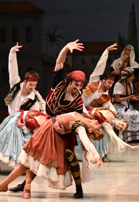 А. АданРомантический балет в трех действияхЛибретто Жюль-Анри Сен-Жоржа, Жозефа Мазилье, Мариуса Петипа Хореография Мариуса Петипа в редакции Василия МедведеваВ Перми балет «Корсар» поставлен по оригинальной партитуре Адольфа Адана, которую театр получил из архивов Парижской оперы. Постановка Мариуса Петипа (1863, Мариинский театр) с приключенческим сюжетом, ориентальными мотивами, витиеватой любовной коллизией, пиратской экзотикой и впечатляющей сценой крушения корабля в финале позволяет воспринимать этот старинный балет по мотивам одноименной поэмы Байрона не как театральную архаику, а как крупнобюджетный блокбастер в стиле Золотого века Голливуда. Балетмейстер Василий Медведев, воссоздавший хореографию Петипа на пермской сцене, убежден, что «Корсар» служит «предтечей балетных шоу».