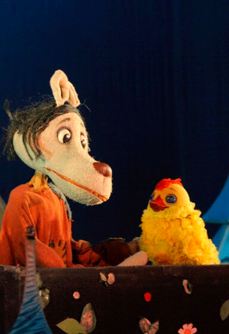 Мюзикл в двух действияхСоздатели спектакля:Режиссёр – Владимир МартьяновСценография и куклы – Владимир ХовралевКомпозитор – Игорь РогалёвТекст песен – Владимир Орлов, Вадим ЖукПриключенческий мюзикл для детей «Золотой цыплёнок» создали известный драматург и поэт Владимир Орлов и композитор Игорь Рогалев. Зрители увидят совершенно невероятную историю о том, как Лиса решила похитить у Деда с Бабой золотое яичко, вырастить из него с помощью Волка золотую курочку и разбогатеть, что и приводит к совершенно фантастическому результату. Волк становится самым настоящим папой для цыплёнка. Как все это произошло и что будет, когда цыплёнок узнает, что настоящее имя его любимого папочки – Волк, заранее рассказывать не хочется. Достаточно будет пообещать, что в добрых сказках все заканчивается общей радостью. В спектакле множество комических эпизодов, неожиданных поворотов событий и, конечно, музыки. Действующие лица и исполнители:Цыплёнок – Элла Мирзоян, Ольга ЕвграфоваЛиса – Татьяна Баркова, Ольга ЕвграфоваВолк – Сергей ЕвграновПродолжительность: 1 час 15 минут с