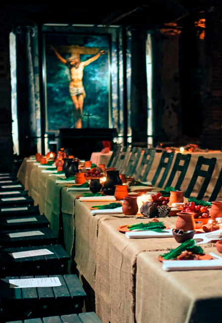 Станьте свидетелями Тайной вечери на уникальном иммерсивном ужине! Вас ждёт путешествие во времени, дегустация блюд и знакомство с древними традициями. Вы перенесётесь в библейские времена и узнаете, как в древнем Израиле проводился Седер Песах. Это праздничный ужин, на котором всё пропитано символизмом: от закусок и напитков до общей молитвы и чтения священных текстов. Именно за такой трапезой в последний раз собрал Иисус своих учеников. Под живую музыку в аутентичных декорациях вы попробуете традиционные израильские блюда, которые были поданы на Тайной вечере. Среди них маца, хумус, баранина, овощи и зелень, красное вино, разведённое с водой*. Во всех нюансах застолья помогут разобраться настоятель Анненкирхе Евгений Раскатов и его соведущие. Будет вкусно, интересно и аутентично! Начало в 20:00, продолжительность мероприятия 2 часа. 18+* Разбавленное вино разливается по древней традиции. Крепость напитка — примерно 2,5%. В качестве альтернативы предлагается