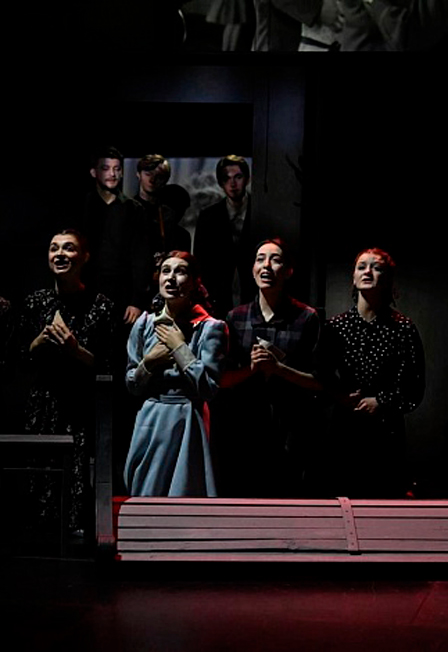 Дождливым вечеромБаллада о войне и любвиСпектакль Российского государственного института сценических искусств Мастерская заслуженного артиста РФ И. И. БлагодёраДню Победы посвящаетсяСпектакль-баллада о войне и любви, в которой стали песни военного времени, а также стихи и песни о войне XX века. Зрители наблюдают в зале кинотеатра, на экране которого демонстрируются кадры из фильмов и хроник военного времени. На этих ярких декорациях молодые артисты изображают историю, в которой трепет и боль вместе, надежда и любовь каждого человека подсвечены одним фоном — войной. Пронзительный объединяющий лейтмотив спектакля — ожидание любимых и надежда на скорую встречу друг с другом. Пространство спектакля пронизано памятью о том времени и звучит как бы реквием по всему, что было разрушено — по судьбам людей, по первой любви, по возможностям счастливой жизни. Премьера спектакля состоялась 27 января 2024 года на сцене Учебного театра на Моховой и была приурочена к 80-летию полного снятия блокады Ленинграда. Спектакль стал дебютом на большой сцене для студентов второго курса магистра заслуженной артистки РФ Ивана Благодёра . Несмотря на юный возраст, вокальные способности этого курса уже получили высшую оценку жюри на нескольких межвузовских фестивалях, а также от таких мастеров, как Алексей Гориболь и Юрий Александров. Художественный руководитель – Иван БлагодёрРежиссёр – Алексей ЕдошинПродолжительность: 1 час 10 минут. Без