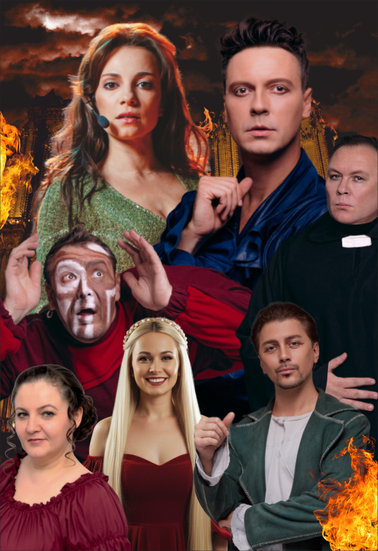 В роли Эсмеральды – Светлана Светикова Мюзикл-шоу — это яркая, динамичная, костюмированная и театрализованная программа в потрясающем «живом» исполнении звёзд первого состава оригинальных мюзиклов. «Я душу дьяволу продам за ночь с тобой» — и можно больше ничего не говорить. За последние 10 лет эта фраза стала культовой. Она олицетворяет собой целый период в истории современной Российской культуры: эпоху музыкального театра, эпоху мюзикла. Жанр мюзикла уверенно завоёвывает популярность в России. Москва и Санкт-Петербург становятся «русским Бродвеем» — в обеих столицах сейчас идут около десятка громких проектов. Наши артисты знакомы зрителям по мюзиклам «Нотр Дам де Пари», «Ромео и Джульетта», «Кабаре», «Три мушкетера», «Монте Кристо», «Маммамия», «Метро» и другие. Мы создали программу «Мюзикл-шоу» для того, чтобы у зрителей появилась уникальная возможность познакомиться с обширным наследием мирового музыкального театра, а также услышать любимые арии (Belle, «Короли ночной Вероны» и другие) в великолепном «живом» исполнении признанных звёзд московских мюзиклов. В нашем мюзикл-шоу не просто звучат арии из знаменитых мюзиклов, а демонстрируются отрывки из спектаклей, которые связаны между собой в единую историю интересным конферансом. Первое отделение — это легендарная история «Нотр Дам де Пари», а второе отделение — история Ромео и Джульетты. Две потрясающие истории в одной программе. Только «живое» исполнение! Вы совершите увлекательное путешествие в удивительный мир мюзикла, насладитесь великолепными голосами. В нашем шоу собрано всё самое лучшее из золотой коллекции мюзиклов, снискавших себе мировую славу.