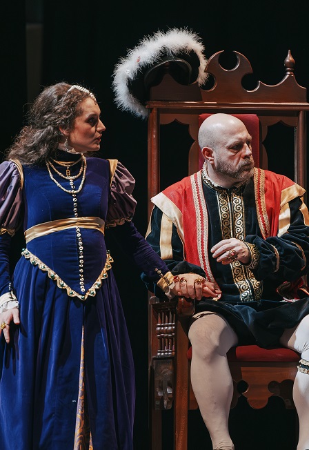 Спектакль повествует о двадцати пяти годах правления Генриха VIII – с 1509 года короля Англии и повелителя Ирландии, второго британского монарха из династии Тюдоров. Король запомнился потомкам количеством своих жен – их было шесть. Одна за другой они уходили либо на казнь, либо попадали в заточение в Тауэр. Постоянная смена фавориток монарха, интриги двора, инициированная королем реформа церкви оказались серьёзной ареной для политической борьбы и привели на плаху ряд его близких соратников, среди которых был философ-гуманист Томас Мор. Король Генрих VIII, наделенный неограниченной силой абсолютизма, мучается вопросами: «Что такое власть? Как ей распорядиться? » Отчаяние и одиночество толкают монарха на безрассудные приказы. Равенство государя и Бога приносит Англии горе и разрушение. В одной из сцен спектакль мгновенно превращается в фарс. Головы летят с плеч одна за другой, жены Генриха меняются на следующую в день казни или смерти предыдущей, двор и окружение не скрывают своего отвращения к королю. Финал спектакля звучит как приговор некогда прекрасному и мудрому монарху…Пьеса (оригинальное название «Блудница») написана в 1969 году английской исследовательницей хроники правления Тюдоров Эллис Рейчел. Постановщик спектакля и переводчик пьесы с английского – Игорь Лысов, художественный руководитель Кировского драмтеатра. Продолжительность: 2 часа 50 минут, с одним