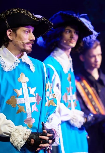 Действующие лица и исполнители:Д’Артаньян – Евгений Егоров, Александр Богданов, Артем ГниденкоАтос – Ефим Колитинов, Алексей Лысенко, Илья КреймерПортос – Константин МурановАрамис – Андрей Шугов, Эмиль КиракосянКонстанция, жена галантерейщика Бонасье – Татьяна Куликова, Юлия Пак, Дарья Бурлюкало, Олеся Левина, Ольга ПономареваМиледи – Яна Куц, Анастасия Негинская, Олеся Левина, Ильина ШмаковаКороль Людовик XIII – Владимир ФилипповКоролева Анна Австрийская – Вера Зудина, Александра Головина, Надежда Бодрова Кардинал Ришелье – Олег ЛицкевичДе Тревиль, капитан мушкетеров – Валерий ЗадонскийКэт, служанка Миледи – Юлия Пак, Ольга Пономарева, Анастасия НегинскаяБонасье, галантерейщик – Артем Гниденко, Алексей Лысенко, Артемий ПоляковГраф Рошфор – Ефим Колитинов, Иван Можейко, Алексей АлексеевЛорд Бэкингем – Иван Гуськов, Иван МожейкоФельтон-английский капитан – Иван Гуськов, Иван МожейкоДе Жюссак-капитан гвардейцев – Рустим Бахтияров, Андрей ШуговЛа шене-камердинер короля – Иван ФёдоровПалач – Иван Гуськов, Иван МожейкоГетера/Трактирщица/Госпожа Кокнар – Ника Рыкунина, Ильина Шмакова, Татьяна Куликова, Надежда БодроваМушкетеры, гвардейцы – Александр Богданов, Иван Гуськов, Иван Можейко, Эмиль Киракосян, Иннокентий Исаев, Степан Емельянов, Андрей Шугов, Илья Креймер, Артем ГниденкоКордебалет – Дарья Бурлюкало, Олеся Левина, Ника Рыкунина, Ильина Шмакова, Ольга Пономарева, Юлия Пак, Татьяна Куликова, Надежда БодроваПродолжительность: 3 часа (с антрактом)