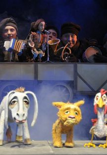 Ливанова, по мотивам всеми любимой сказки братьев ГриммВеселый юноша Трубадур и его друзья Кот, Пес, Петух и Осел с песнями и шутками идут по свету в поисках счастья и дают в городах представления, которые народ очень любил.