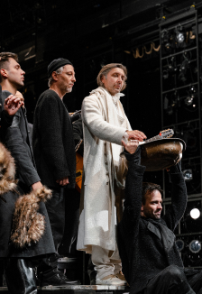 Действующие лица и исполнители:Лир, король Британии — Михаил КрыловГраф Кент — Юрий БуторинШут — Александр МичковПридворный — Владислав ТашбулатовДоктор — Степан ВладимировГонерилья, старшая дочь Лира — Полина КутеповаГерцог Олбани, её муж — Алексей КолубковОсвальд, её дворецкий — Амбарцум КабанянРегана, вторая дочь Лира — Серафима ОгарёваГерцог Корнуолл, её муж — Василий ФирсовКорделия, младшая дочь Лира — Дарья КоныжеваГерцог Бургундский, претендент на руку Корделии — Вениамин КраснянскийКороль Французский, претендент на руку Корделии — Александр МорововГраф Глостер — Томас МоцкусЭдгар, старший сын Глостера — Юрий ТитовЭдмунд, побочный сын Глостера — Фёдор МалышевМузыканты — Михаил Волох, Дмитрий Карев, Евгений Рогозинский, Антон СергеевЕвгений АлтудинХОР (Герольд, Гонец, Рыцарь, Стража, Слуги, Солдаты, Капитан, Французы) — 4-я стажёрская группа театраПродолжительность: 3 часа 30 минут (с 1