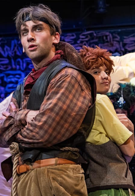 На сцене — история о двух незадачливых авантюристах, которые похитили мальчишку, чтобы получить у его богатого папаши выкуп.