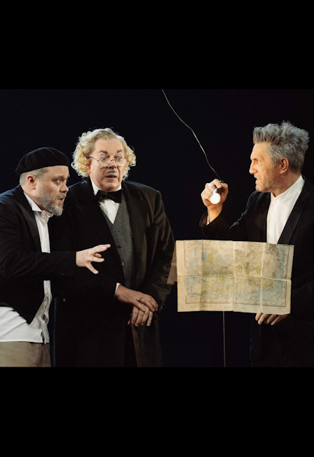 Ж. СиблейрасПостановка - Римас ТуминасСценография и костюмы - Адомас ЯцовскисМузыка - Фаустас ЛатенасХудожник по свету - Майя ШавдатуашвилиСпектакль - лауреат Вахтанговской премии «Человек театра». «Ироничная французская трагикомедия для трёх актёров. Персонажи – Рене, Фернан и Густав – чудаковатые мечтатели, которые постоянно спорят, ссорятся и шутят: о былом и о несбыточном, о давно забытом и о совершенно невероятном. В пьесе современного французского драматурга Жеральда Сиблейраса речь идёт о ветеранах Первой Мировой войны, и это остроумная обманка. Можно подумать, будто все события происходят где-то очень далеко и с какими-то совсем другими людьми, ничем не похожими на нас. Зато в спектакле нет чётких указаний на место и время. Есть три человека с абсолютно разными характерами, которые постоянно обмениваются саркастичными замечаниями, но всё-таки именно они поддерживают друг друга. Каждый день герои собираются на террасе дома, с которой видны холм и тополя. Они очень хотят отправиться в поход за приключениями. Хотя бы до этого холма, но лучше в Индокитай. Однако, все трое уже весьма взрослые люди и за плечами каждого его собственное богатое событиями прошлое, что обеспечит повествованию много внезапных поворотов сюжета. Поэтому, конечно, как у всех взрослых и очень занятых людей, у них находится множество поводов отложить начало путешествия. »Действующие лица и исполнители:Густав - Владимир ВдовиченковФернан - Артур ИвановРене - Владислав ДемченкоПродолжительность: 2 часа 40 минут (с одним
