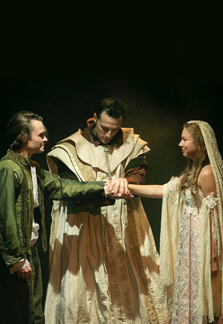 Самая известная и прекрасная история о любви! Пьеса «Ромео и Джульетта» была написана 5 веков назад, но и по сей день судьбы юных влюбленных не перестают трогать наши сердца. На спектакле вы перемещаетесь в Верону времени синьора Бартоломео делла Скала из далекого 21 века, чтобы разгадать тайну великой любви и непонятной смерти двух подростков. Они вселяются в души актёров шекспировского времени, которые готовятся разыграть эту трагедию перед зрителем. И вдруг стирается грань между игрой и жизнью. Что ждет нас в конце… Внезапные сценарные повороты и комедийные фантазии, прочитанные между строк пьесы, азартные и зрелищные танцы, хоральные партии в исполнении актеров – всё это привело к неожиданному и яркому спектаклю. Режиссёр – постановщик - Сергей АлдонинРежиссёр – педагог - Наталья БулыгаХудожник-постановщик — Максим ОбрезковХореография — Александр МацкоВ ролях:Ромео – Филипп БледныйДжульетта – Катерина ШпицаОтец Лоренцо – Тимур Орагвелидзе/ Сергей АлдонинБенволио – Алексей Боченин/ Филипп ХитровМеркуцио – Изнаур Орцуев/ Валерий Панков/ Евгений СамаринТибальт – Юрий Николаенко /Георгий Караяннидис/ Ян ИльвесКормилица – Екатерина Николаева/ Наталья БулыгаЛеди Капулетти – Елена Соломина/ Оксана КоростышевскаяДядя Капулетти – Кирилл Соленов/ Денис БузинКоролева Маб – Филипп Ситников/ Анна ЗарянкинаПетр, слуга – Иван КараяннидисСлуги, прачки, горожане Вероны – Ксения Тишкова, Алена Цедилина, Марина СавичеваПродолжительность: 2 ч 30 мин (с