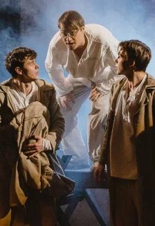 Фантазия по мотивам знаменитой поэмы Александра Твардовского Режиссёр — Андрей КрупникХудожник — Алина АлимоваРежиссер восстановленной версии спектакля — Альберт ХасиевРоссия проходила через испытания не раз. Однако всегда появлялись герои, которые, не боясь потерять жизнь, вступали в неравный бой со смертью, спасая родину. Именно они остаются жить в веках. Главной герой книги о бойце практически с первых глав полюбился читателям. Он совместил в себе живую непосредственность, крепость духа и честность. Автор намеренно отказался от линейности сюжета и конкретизации дат и событий. Тёркин стал неким собирательным образом, близким к реальным людям, которые могли увидеть в персонаже что-то свое. Иллюстрированное приложение к первым главам поэмы было издано особым ограниченным тиражом и вручалось бойцам в качестве специального презента. Действующие лица и исполнители:Первый Тёркин — Денис Кириллов / Станислав БуровВторой Тёркин — Влад ОкропиридзеТретий Тёркин — Тимур Тихомиров / Дмитрий ВолодинЧетвертый Тёркин — Максим ФиногеновПятый Тёркин — Игорь Лагутин / Андрей ЗенинСмерть — Ольга Кузина / Моряна Анттонен-шестаковаХор — Инна Лясковец, Мария Железнова, Надежда Филиппова, Анастасия КузнецоваПродолжительность: 1 часа 20 минут (без