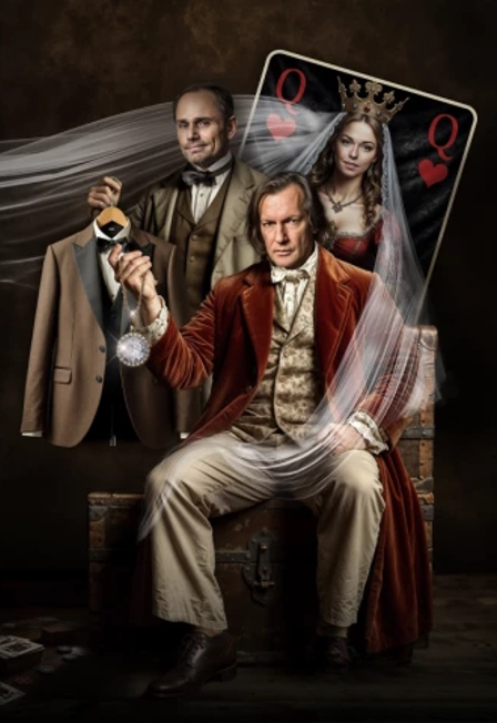 Сухово-КобылинСценическая версия Владимира ГерасимоваРежиссёр—постановщик — Евгений ГерасимовВторой режиссёр — Владимир ГерасимовСценография — Анастасия ГлебоваХудожник по костюмам — Андрей КлимовХореограф-постановщик — Сергей ЗемлянскийАссистент-хореограф — Анна ГилуноваКомпозитор и аранжировщик — Алексей ЛосихинРепетитор по вокалу — Анастасия СавицкаяХудожник по свету — Евгений ЛисицынПомощник режиссёра — Наталья Корнева / Bepa Лёвшина«Свадьба Кречинского» — единственная пьеса в мировой драматургии, написанная в тюрьме, куда Сухово‑Кобылин был помещён по подозрению в убийстве своей гражданской жены француженки Луизы Симон-Деманш.