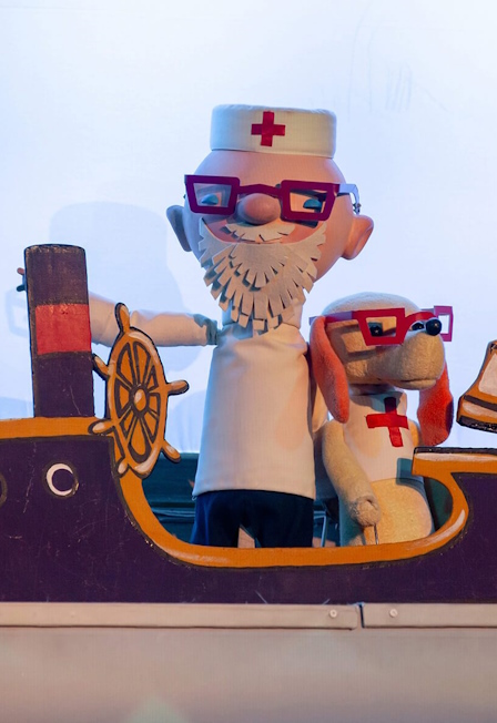 Легендарный спектакль, на премьере которого побывал сам Корней Чуковский и который любит не одно поколение зрителей, возвращается на сцену в обновленной версии - с современными мультимедийными декорациями. Сегодня зрители могут увидеть обновлённую версию спектакля с восстановленными куклами по эскизам Николая Целикова и новыми, современными декорациями Виктора Платонова. В спектакле используются самые разные техники – драматического, теневого и кукольного театра. Маленькие зрители вместе с Ведущими помогают доброму доктору Айболиту лечить больных зверей и отважно сражаются с коварным Бармалеем. Автор сценария - Эмиль МэйХудожник - Николай ЦеликовКомпозитор - Анатолий ПаппеРежиссер-постановщик - Лариса ВолковаХудожник – постановщик - Виктор ПлатоновЗаведующий световым цехом - Александр ВинскийЗаведующий звуковым цехом - Валерий АнтоновЗав. постановочной частью - Александр КоролевРоли:Лисенок: Наталья ГолдаЗайчиха: Раиса ГраневскаяМедвежонок: Владислав РябцевБегемот: Виктор СкрябинКит, жираф: Ирина НохринаВедущая: Марина ТопорковаВедущий: Василий КуралевАйболит: Андрей БратаевБармалей: Андрей ТушкановАвва: Елена Заболотская/Ариана ВойтюкПродолжительность: 1 час 20 минут (с