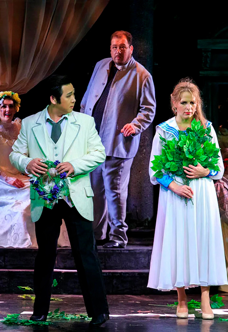 Лирические сцены в семи картинахМузыка - Петр ЧайковскийЛибретто - П. Чайковский и К. Шиловский (по А. С. Пушкину)Количество картин - 7Постановщик - народный артист России Юрий АлександровДирижеры - АЛЕКСАНДР ГОЙХМАН, РОБЕРТ ЛЮТЕР, ИВАН ДЕМИДОВХудожник-постановщик - народный художник России ВЯЧЕСЛАВ ОКУНЕВКонцертмейстер - НИНА ЖУКОВСКАЯХормейстер - МАРИЯ ГЕРГЕЛЬХудожник по свету - ВЕРА ЛЫСЬЕВАРежиссеры - Татьяна КАРПАЧЕВА, Наталья ЧЕРНИКОВА, Дарья МОДЗАЛЕВСКАЯСпектакльЮРИЯ АЛЕКСАНДРОВА на музыку П. ЧайковскогоСпектакль Юрия Александрова обернулся нетрадиционным режиссерским решением, что позволило по-новому взглянуть на знакомые события самой популярной русской оперы. В новой интерпретации действие разворачивается в атмосфере чеховской эпохи конца XIX века. Сам постановщик Ю. Александров так сформулировал концепцию спектакля: "Мы показываем не оперу Чайковского, а наше отношение к Чайковскому и Пушкину". В его "Онегине" смещены смысловые и временные акценты, что позволяет зрителям взглянуть на оперные персонажи под новым ракурсом. Вся контекстность произведения выстроена в стилистике скорее чеховского, нежели пушкинского театра. И пусть «Евгений Онегин» под руководством Александрова – это неповторимая опера, но действие, наполненное множеством интересных режиссерских находок, захватывает вовсе не этим. Постепенно, картина за картиной, проясняется оригинальный замысел режиссера. Так зрители понимают, что все происходящее является плодом воображения мечтательной Татьяны, в творческом сознании которой причудливо соединяются прошлое, настоящее и будущее. Хрестоматийная история несчастной любви в такой трактовке обретает первозданную свежесть. Первое исполнение оперы состоялось 17 марта 1879 года в Москве силами учащихся консерватории под управлением Н. Рубинштейна. Премьера в театре “Санктъ-Петербургъ Опера” - 29 июня 1993 года на сцене Эрмитажного