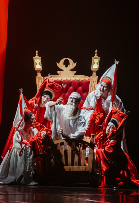 Сказки Пушкина»Спектакль основан на трех знаменитых сказках Пушкина — «Сказке о попе и о работнике его Балде», «Сказке о рыбаке и рыбке» и «Сказке о золотом петушке».
