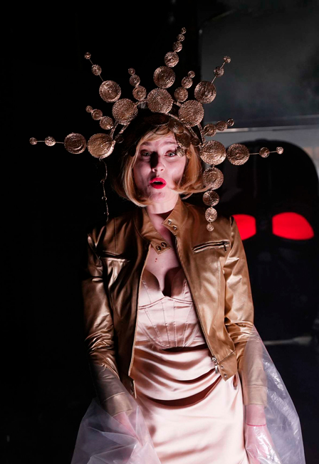 Режиссер использует собственный, авторский метод деконструкции, смешивая тексты, создавая хаотичное сценическое пространство.